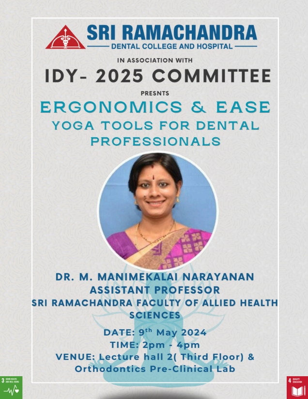 The seminar on “Ergonomics & Ease: Yoga Tools for Dental Professionals” provided valuable and actionable insights for the attendees. Dr. M. Manimekalai Narayanan clear explanations and practical demonstrations of prayer, loosening exercises, Surya Namaskar, asanas, pranayama, relaxation, and meditation offered a comprehensive toolkit. Dental professionals left equipped with knowledge and techniques to integrate yoga into their daily lives, fostering better physical ergonomics, mental resilience, and overall well-being in their challenging and vital profession.